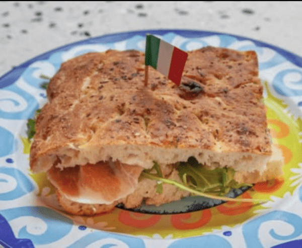 pain pizza façon panini cuit minute. Base: fior di latte, tomate cerise, roquette, Légume au choix: aubergine, courgette, poivron, artichaut. Charcuterie au choix: Jambon de parme, jambon blanc, speck, mortadelle. Sauce: crème balsamique