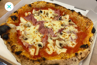 sauce tomate, fior di latte, grana padano, jambon blanc, champignon, basilic.